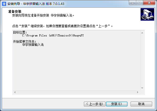 安裝向?qū)КF(xiàn)在準(zhǔn)備開始安裝華宇拼音輸入法。