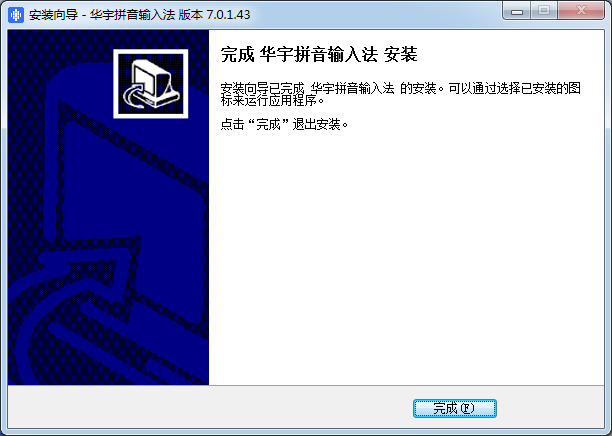 客裝向是民富盛華宇拼音輸入法的安裝??梢酝ㄟ^選擇已安裝的圖點(diǎn)擊“完成”退出安裝。
