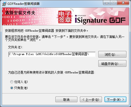 安裝程序?qū)袵DFReader簽章閱讀器安裝到下面的文件夾中。在該文件來(lái)中進(jìn)行支裝,