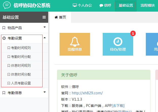 1、考勤設(shè)置,進入系統(tǒng)【基礎(chǔ)設(shè)置→考勤設(shè)置】;