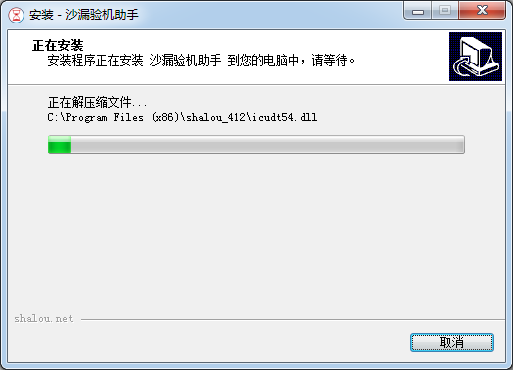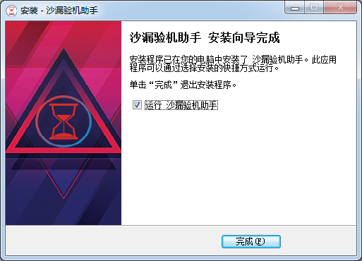 安裝程序正在安裝沙漏驗機助手到您的電腦中,請等待。