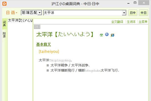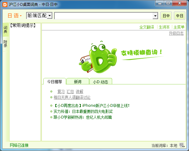 2、單擊滬江小d日語(yǔ)詞典的【中日】按鈕后按回車鍵即可。