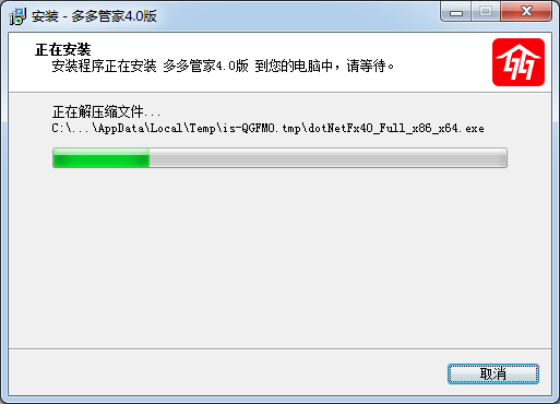 正在安裝.安裝程序正在安裝多多管家4.0版到您的電腦中,請等待。