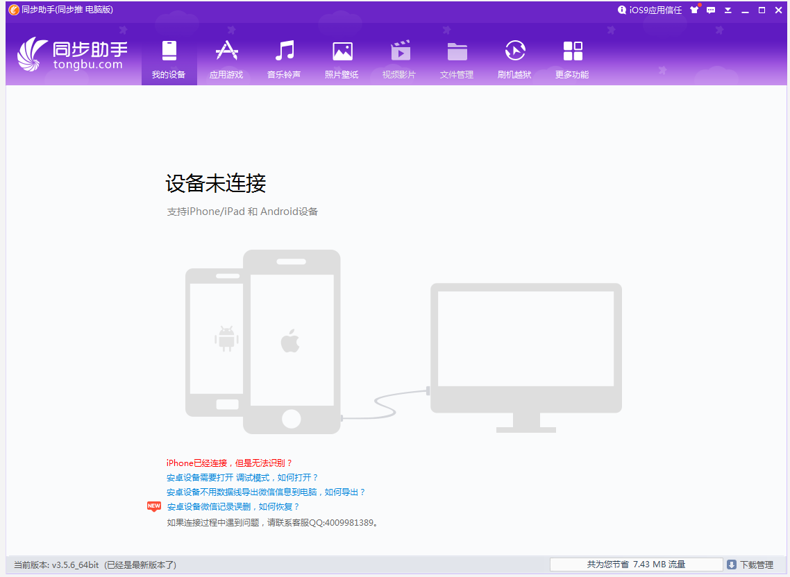 同步推同步助手是一款針對蘋果手機(jī)打造的一款用于在PC電腦上管理蘋果手機(jī)(也支持安卓)的手機(jī)管理軟件,可以幫助用戶進(jìn)行短信/聯(lián)系人/音樂/圖片導(dǎo)出,白蘋果修復(fù)等功能,蘋果用戶無需越獄,讓你輕松管理手機(jī),如果你需要在電腦中管理手機(jī)的話快來試試kkx分享的這款同步助手綠色版64位吧!
