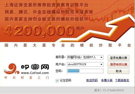叩富網(wǎng)模擬炒股軟件是一個專業(yè)炒股練習(xí)平臺,叩富網(wǎng)模擬炒股軟件和web網(wǎng)上交易的用戶名是通用的。用戶可以結(jié)合自己現(xiàn)有的證券行情分析軟件進行委托下單。zol提供叩富網(wǎng)模擬炒股軟件官方版下載。