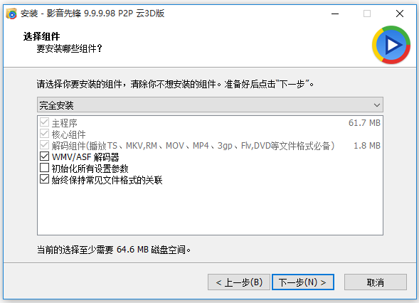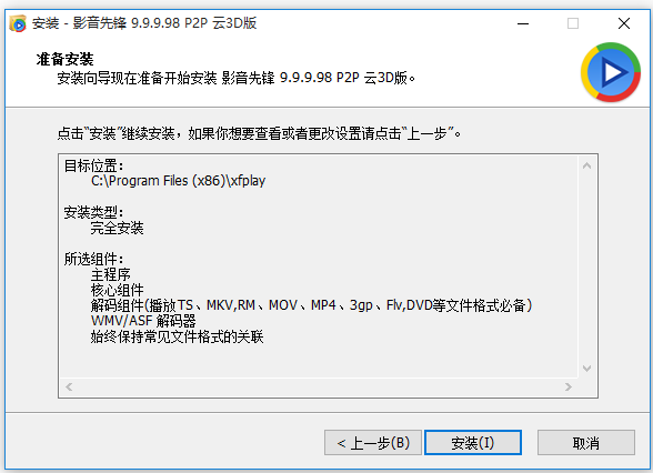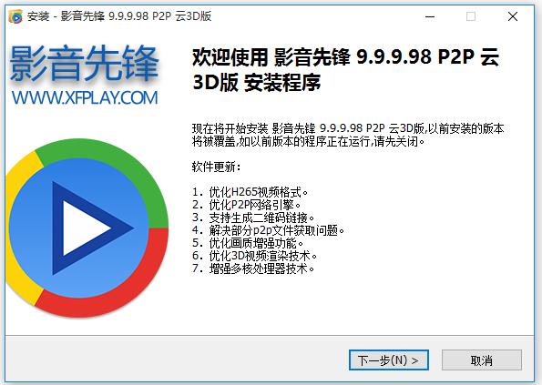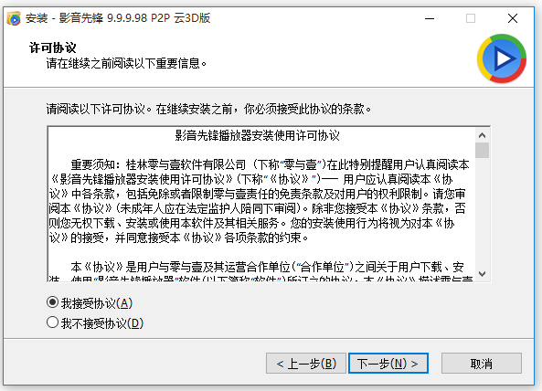 現(xiàn)在將開(kāi)始安裝影音先鋒9.9.9.98 P2P云3D版,以前安裝的版本