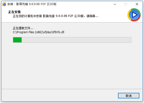正在你的計(jì)算機(jī)中安裝影音先鋒9.9.9.98 P2P云3D版,請(qǐng)稍等。