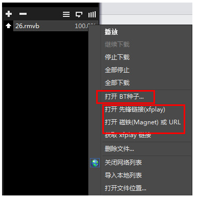 4、除此之外,影音先鋒播放器官網(wǎng)在線點(diǎn)播還支持BT種子和其他URL地址,你也可以把迅雷的視頻bt種子任務(wù)添加進(jìn)去在線點(diǎn)播。