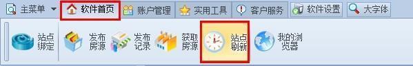 1、登錄房產(chǎn)營(yíng)銷助手軟件,點(diǎn)擊導(dǎo)航欄的“軟件首頁(yè)”然后點(diǎn)擊“站點(diǎn)刷新”功能。