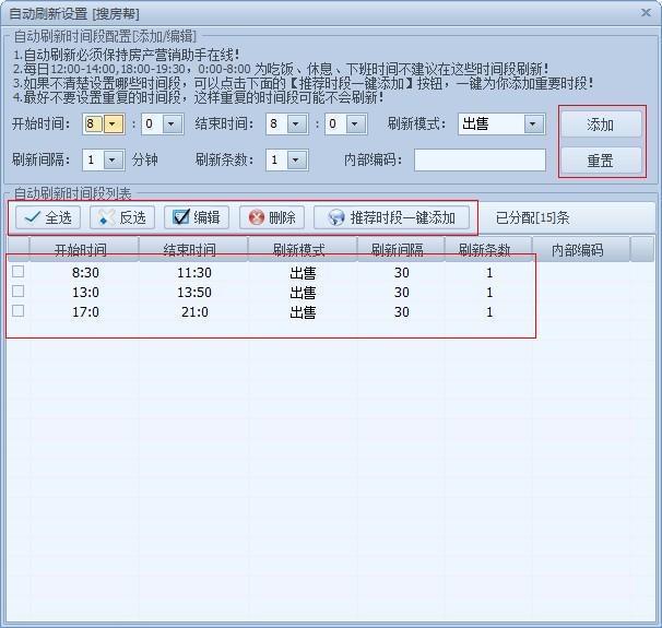 此時(shí)可以按照自己的需求設(shè)置刷新的時(shí)間、頻率、以及房源的類型來(lái)自由設(shè)置。在設(shè)置好之后,選擇“添加”按鈕就可以了。