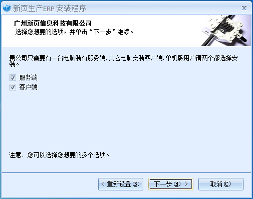 貴公司只需要有一臺電腦裝有服務(wù)端, 其它電腦安裝客戶端,單機版用戶清兩個都選擇安裝。