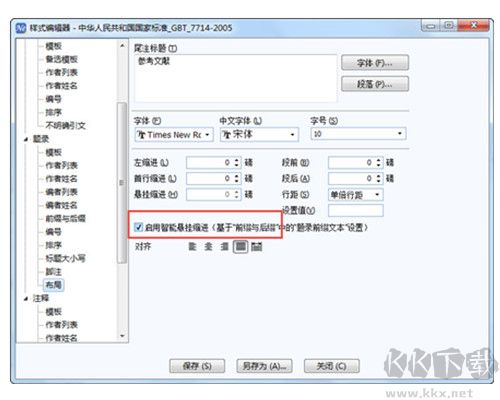 1. 請點擊 “工具”-“樣式”-“樣式管理器”。若 NE 采用國標 GB7714 - 2005 樣式,需雙擊打開該樣式,點擊 “題錄”-“布局”,勾選 “啟用智能懸掛縮進” 后進行保存。(首次編輯樣式時,需點擊 “另存為”;后續(xù)再次編輯時,可在自定義區(qū)域找到該樣式,然后點擊保存。)