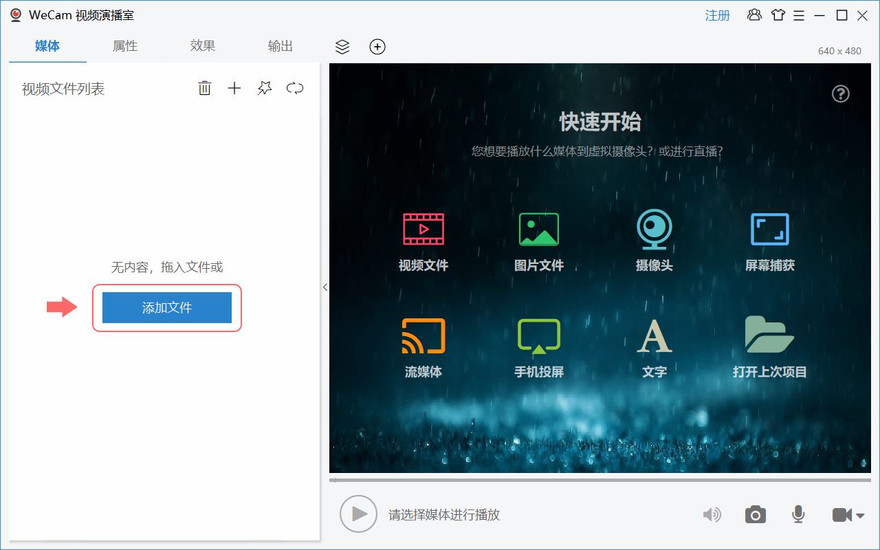 支持手機(jī)屏幕投影、圖片、視頻、音樂(lè),輕松放入WeCam;