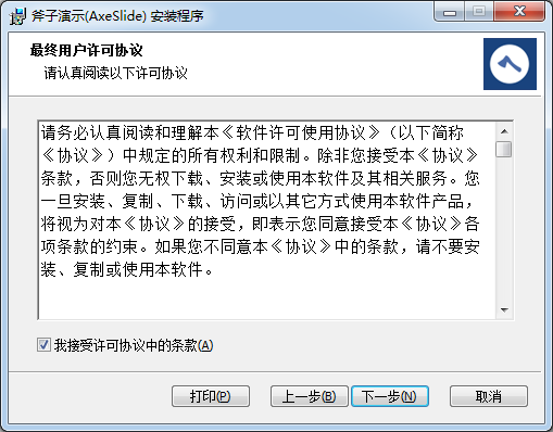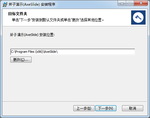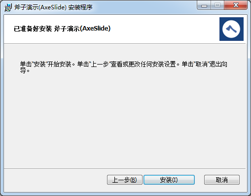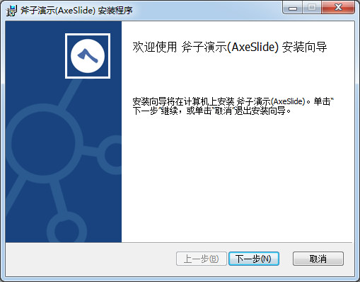 2.歡迎使用斧子演示(AxeSlide)安裝向?qū)О惭b向?qū)⒃谟嬎銠C上安裝斧子演示(Axeslide)。單擊“下一步“繼續(xù),或單擊“取消“退出安裝向?qū)А?br />