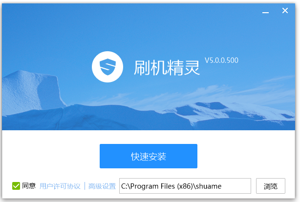 在kkx分享的地址獲取刷機(jī)精靈壓縮包,解壓壓縮包雙擊setup.exe開始安裝,勾選【同意】,點(diǎn)擊【快速安裝】,如要一些個(gè)性化設(shè)置的話可以點(diǎn)【高級設(shè)置】;