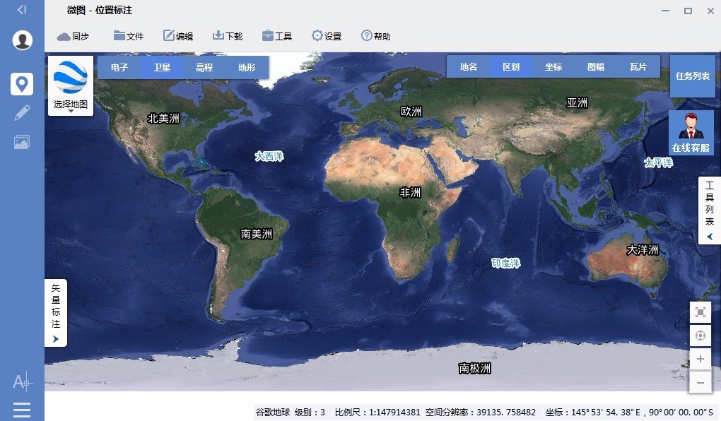 3、可在線或離線加載全球谷歌衛(wèi)星地圖;