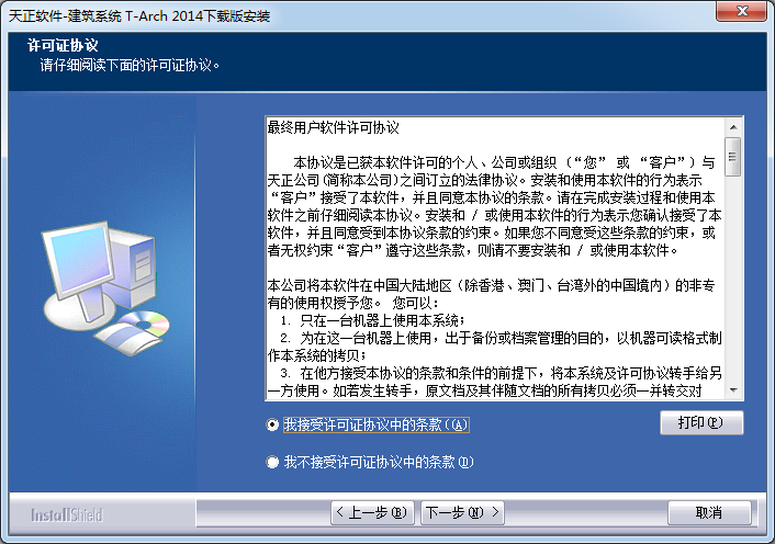 1.到本站下載安裝天正建筑TArch,打開(kāi)安裝程序,接受此協(xié)議,點(diǎn)擊下一步
