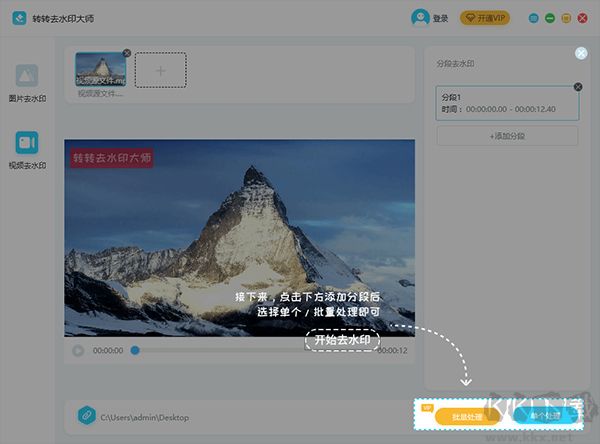 5、單個(gè)處理流程:點(diǎn)擊【單個(gè)處理】按鈕,靜待處理完成,獲取無(wú)水印圖片。