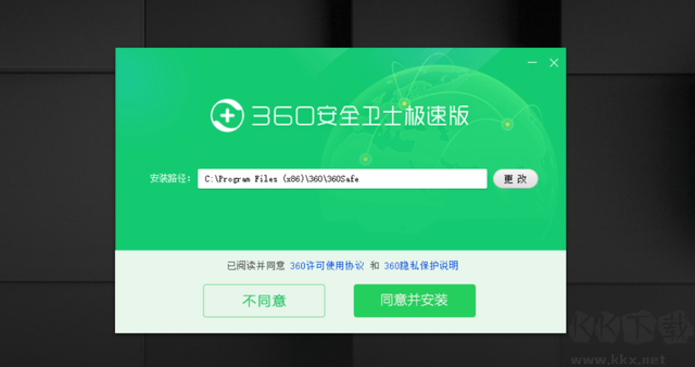 從下載完成后的安裝界面看,360安全衛(wèi)士極速版與360安全衛(wèi)士最新版本的13.0一致,維持了簡單的風格,僅提供安裝路徑選項。