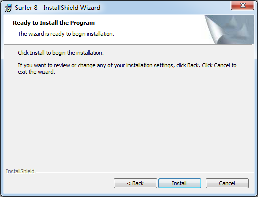 The InstallShield(R) Wizard will install Surfer 8 on your