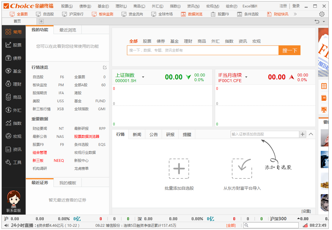 Choice金融終端是一款由東方財富信息有限公司推出適用于炒股人員使用的一款專業(yè)炒股軟件,內置完美的數(shù)據(jù)統(tǒng)計分析功能,實時更新股市行情,方便用戶看股、買股,幫助股民做出正確投資決策,幫你在滬深、新股、新三板、港股中篩選出最佳股票。Choice金融終端包含了行情報價、多維數(shù)據(jù)、專題統(tǒng)計、新聞資訊、研究報告、常用金融模型與應用等工具,是你非常不錯的炒股軟件!