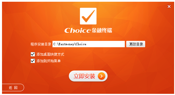 下載Choice金融終端,解壓壓縮包,雙擊.exe文件,彈出界面,勾選同意東方財Choice用戶協(xié)議,點擊立即安裝;