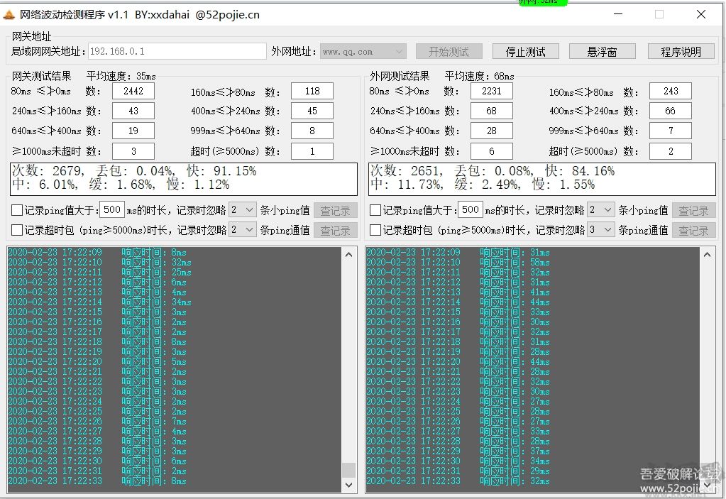 1.程序同時(shí)檢查網(wǎng)關(guān)和外網(wǎng),輔助判斷路由是否斷流,外網(wǎng)否穩(wěn)定;