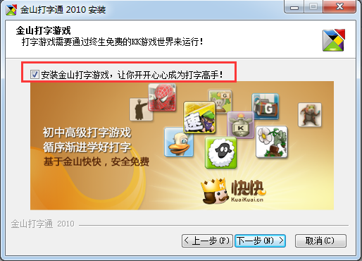 2.選擇是否安裝金山打字游戲,如果不需要將勾去掉;