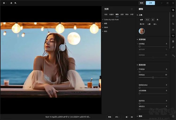 5、一體式的 Al 預設:超 50 個內(nèi)置預設并持續(xù)更新,利用 AI 預設提升照片品質(zhì),修飾皮膚、去除瑕疵。