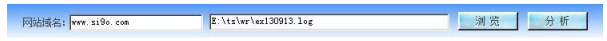 1、輸入待分析日志所屬網(wǎng)站域名,單擊“瀏覽”,定位到日志所在文件夾,雙擊要分析的日志,如圖所示: