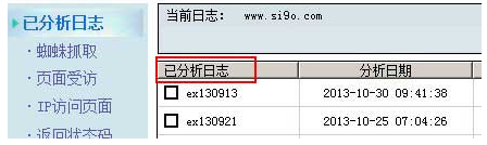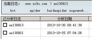 3、單擊“已分析日志”,再單擊“已分析網(wǎng)站”下面的域名,則顯示該域名下的所有已分析日志,如圖所示: