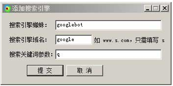 2)分別輸入“搜索引擎蜘蛛、搜索引擎域名和搜索關鍵詞參數(shù)”,最后提交即可。