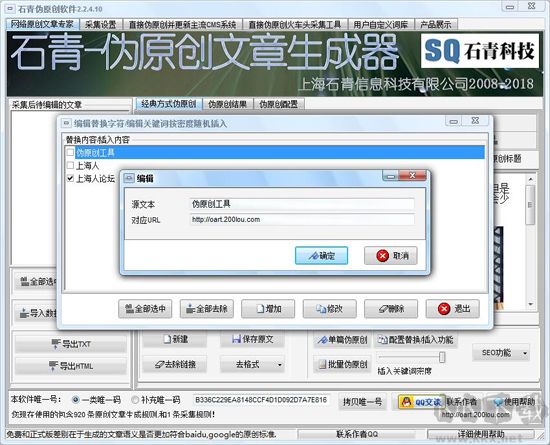 這個功能,主要是給偽原創(chuàng)后的文章中指定的文字,加上URL鏈接,做出外鏈。同時也可以按照配置的關(guān)鍵詞密度插入設(shè)定好的關(guān)鍵詞。