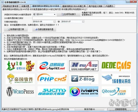 7、獨家支持在線智能偽原創(chuàng)動易、新云、dede 等主流 CMS 系統(tǒng)。