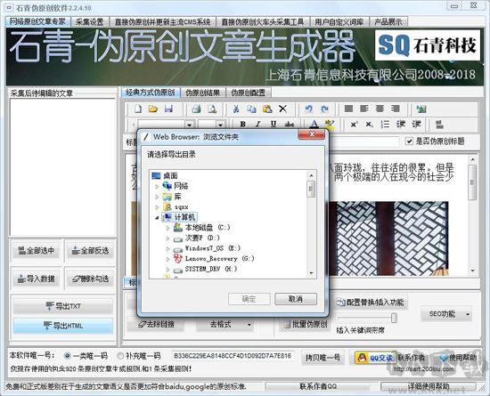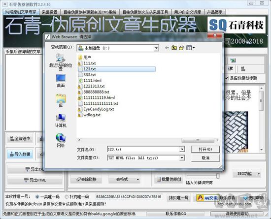 6、偽原創(chuàng)內(nèi)容支持導(dǎo)入導(dǎo)出為 txt、html 等格式。