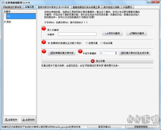14、多內(nèi)核系統(tǒng),處理上萬字偽原創(chuàng)文章速度極快。