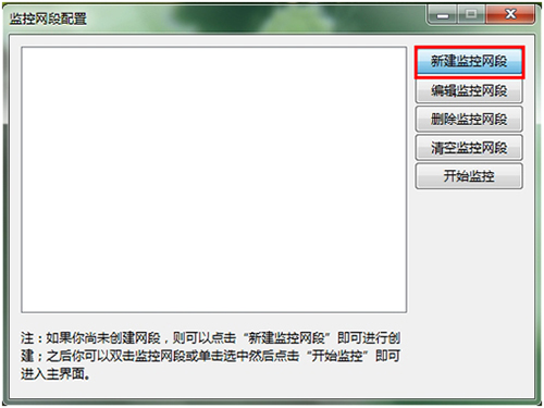 2、首先點擊“新建監(jiān)控網(wǎng)段”按鈕。點擊后將彈出下面的窗口。