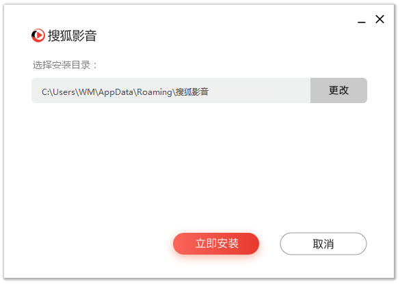 C:\Users\WM\AppData\Roaming\搜狐影音,點擊【立即安裝】,