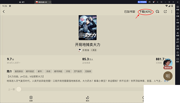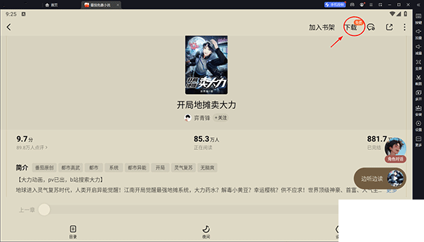 2、閱讀作品時輕點屏幕中間,頂部菜單中找到下載按鈕點擊。