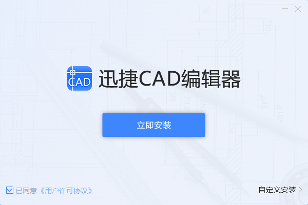 1.將kkx分享的壓縮包解壓一下,得到迅捷cad的主程序,點(diǎn)擊自定義安裝;