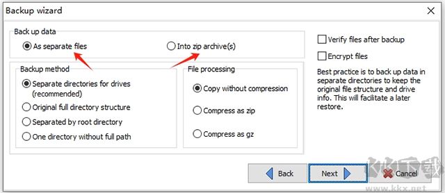 5、可選擇直接備份文件或壓縮為 zip 文件,選擇后點(diǎn)擊下一步。