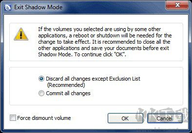 注意:如果您選擇“強(qiáng)制刪除卷”,Shadow Defender將在退出影子模式之前嘗試關(guān)閉其他應(yīng)用程序使用的所有文件。