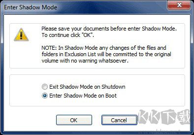 注意:如果您選擇“關(guān)機(jī)時(shí)退出影子模式”,卷將在操作系統(tǒng)重新啟動(dòng)或關(guān)機(jī)時(shí)自動(dòng)退出影子模式。如果您選擇“在靴子時(shí)進(jìn)入影子模式”,卷將在操作系統(tǒng)重新啟動(dòng)或關(guān)閉時(shí)自動(dòng)退出陰影模式。但是當(dāng)你下次登錄到windows時(shí),卷將自動(dòng)進(jìn)入影子模式。
