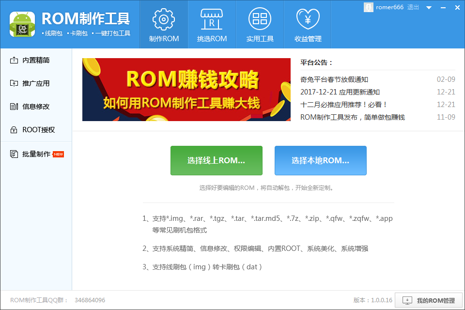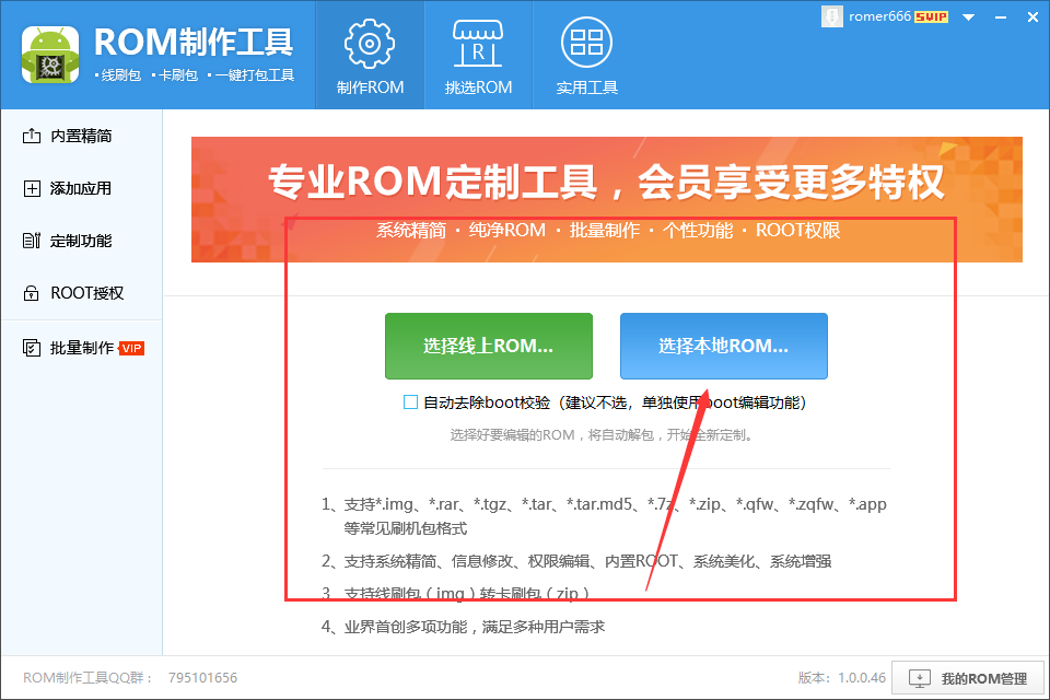 3、支持系統(tǒng)精簡、信息修改、添加ROOT等實用功能,提供海量ROM資源下載;