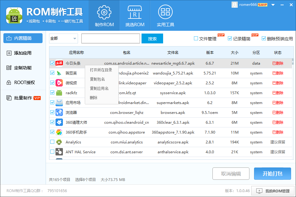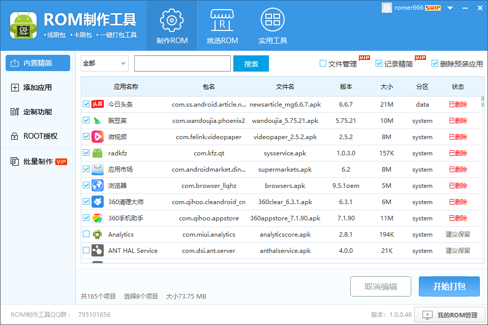 完成上述步驟選擇【開始制作】,自動精簡工具,實時查看ROM包裝狀態(tài)。