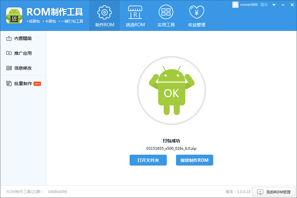 完成上述操作后,點擊開始包裝自動完成包裝,新ROM生成后自動打開文件目錄。