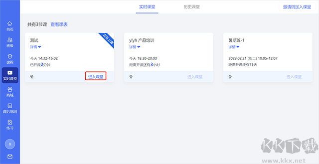 學(xué)生登錄機構(gòu)下發(fā)的賬號,進入實時課堂模塊,該模塊展示學(xué)生進行中和即將開始的全部課堂
