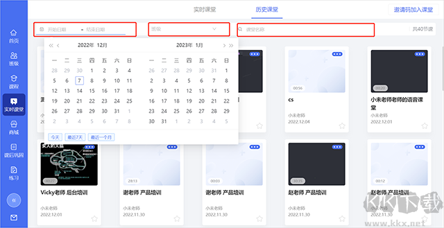 - 學(xué)生可自定義時間段來篩選歷史課堂。