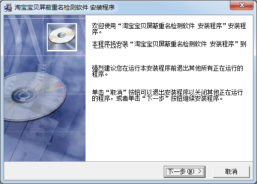 1.歡迎使用“淘寶寶貝屏蔽重名檢測軟件安裝程序”安裝程序。
