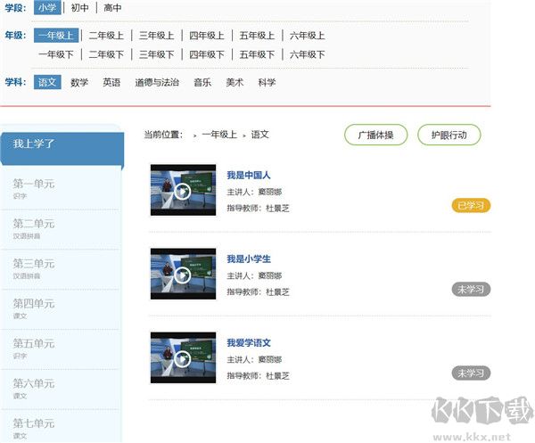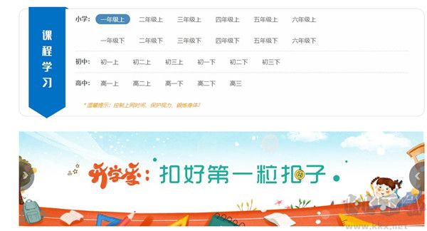 用戶在這里點擊進入下載后點擊該網(wǎng)頁進入學(xué)習(xí)平臺,然后選擇對應(yīng)的學(xué)習(xí)年級資源進行學(xué)習(xí)。這里我們用一年級的課程試試看